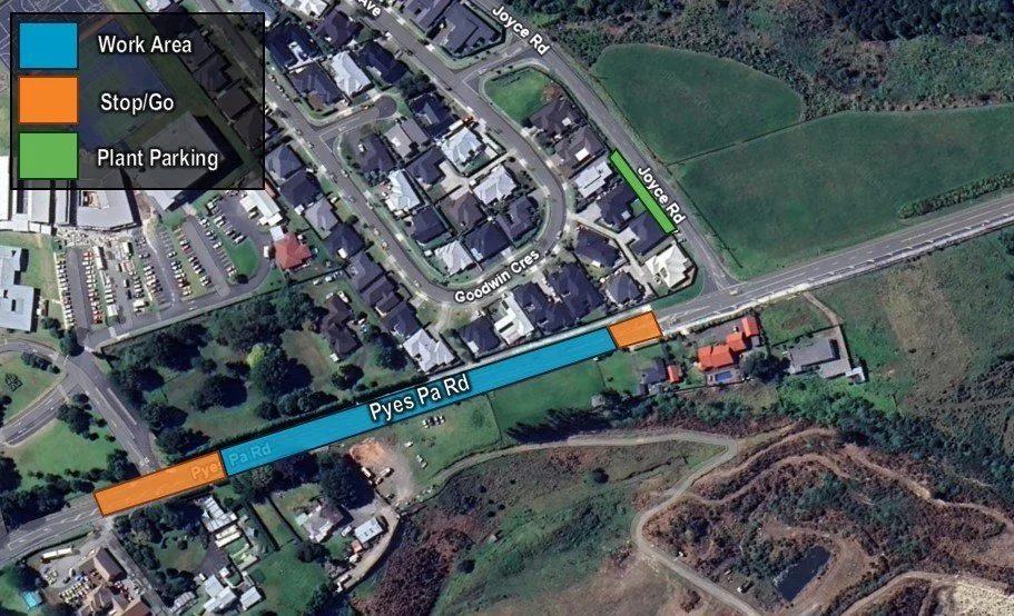 The affected area highlighted will be closed to allow for plant movement through the site, however there will likely be additional traffic management present in the surrounding area. Plant Parking will be on Pyes Pa Road.
