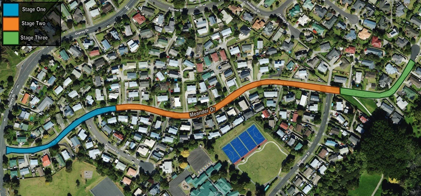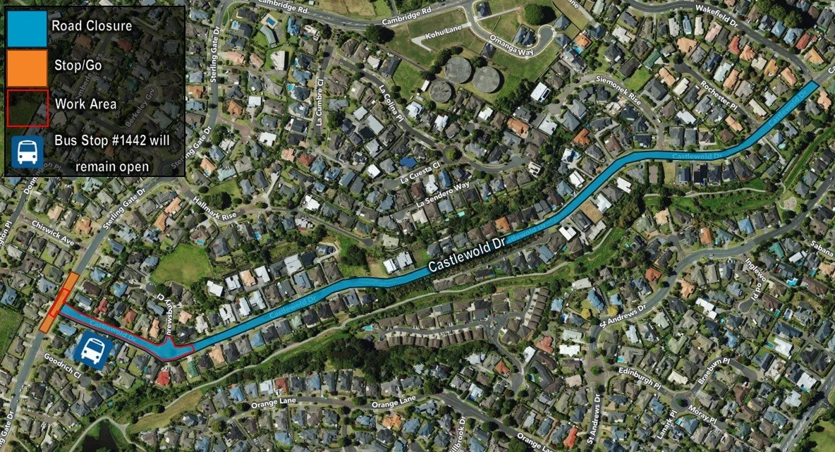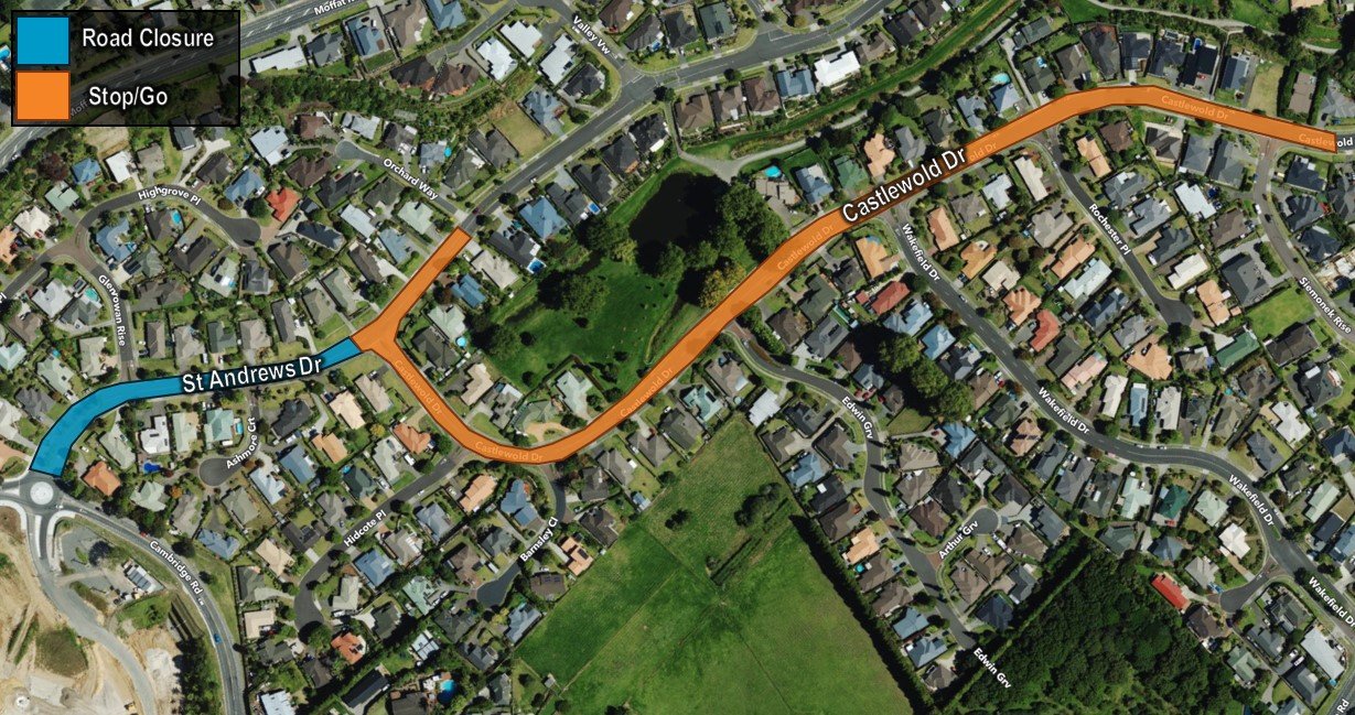 The affected area highlighted will be operating under stop/go traffic management. A section of St Andrews Drive will be closed. Residents will still be able to access their properties.