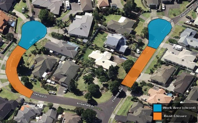 The affected areas highlighted will be operating under footpath closures and shoulder closures. Residents and businesses will still be able to access their properties.